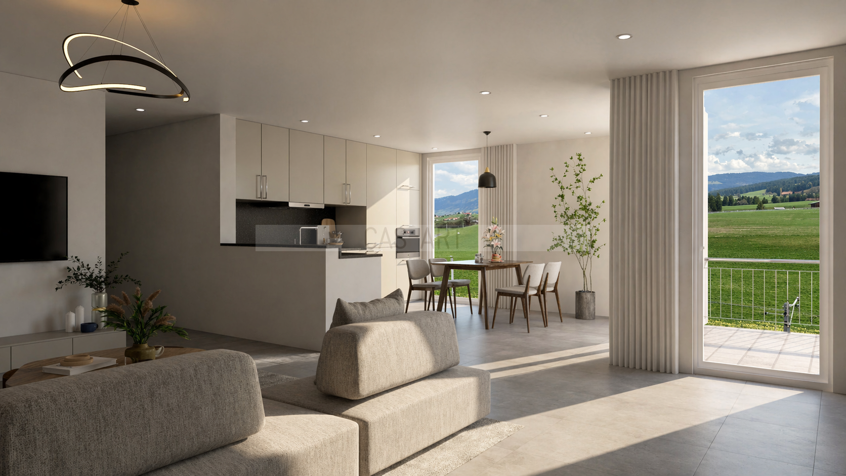 - 1 séjour/salle à manger lumineux avec accès à la loggia